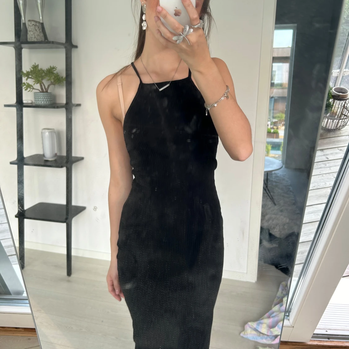 Svart tight ribbad långklänning med smala axelband