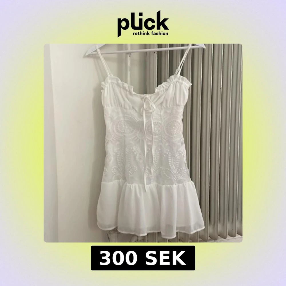 Supersöt vit kort klänning med tunna axelband, spetsdetaljer och broderat mönster. Köpt på shein för 350 och har aldrig använt endast testat eftersom den var lite för kort för mig därav priset💕