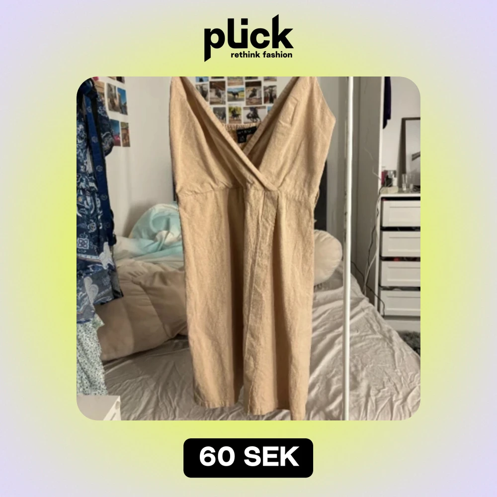 Beige klänning i storlek 38 (mer som en 34) Passar mig som är 168. Använd ca 2 ggr så i fint skick! Perekt i sommar att ha till & från stranden🥰💕Säljer pga jag har för många klänningar🙈