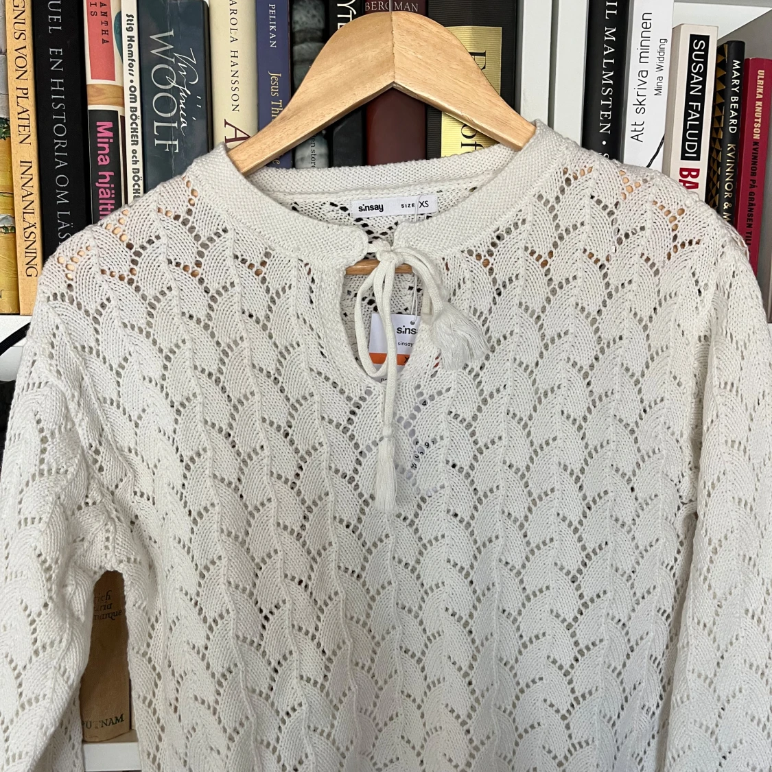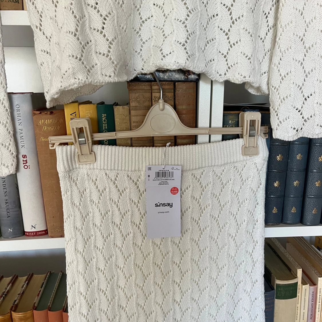 Säljer en vit stickad tröja och en lågmidjad kjol från Sinsay med ett vackert mönster🤍 Tröjan har långa ärmar och en knytning vid halsen och kjolen har elastisk midjeband Perfekt för sommaren , studenten eller stranden ☀️ Aldrig använda!
