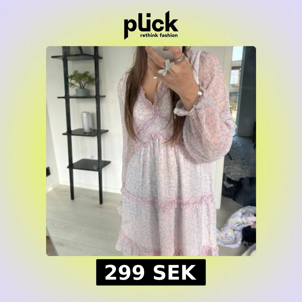 Ljusrosa blommig klänning med volang