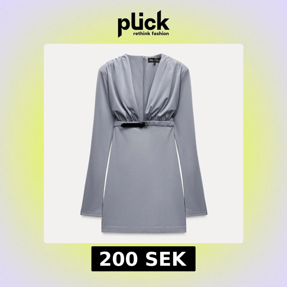 Supersnygg grå kortklänning från Zara med djup v-ringning, långa ärmar och ett coolt bälte i midjan. Klänningen har en stilren och modern look, perfekt för dig som gillar minimalistisk stil.