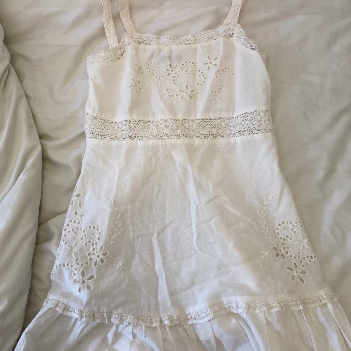 Säljer denna fina klänningen från zara! Har bara använt den två gånger förra sommaren. Har sytt upp banden för att dem va för långa men skulle man vilja ha dem längre så är det jättelätt att sprätta upp dem!💕