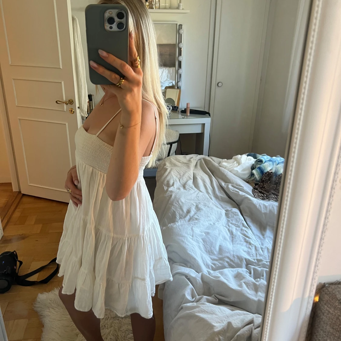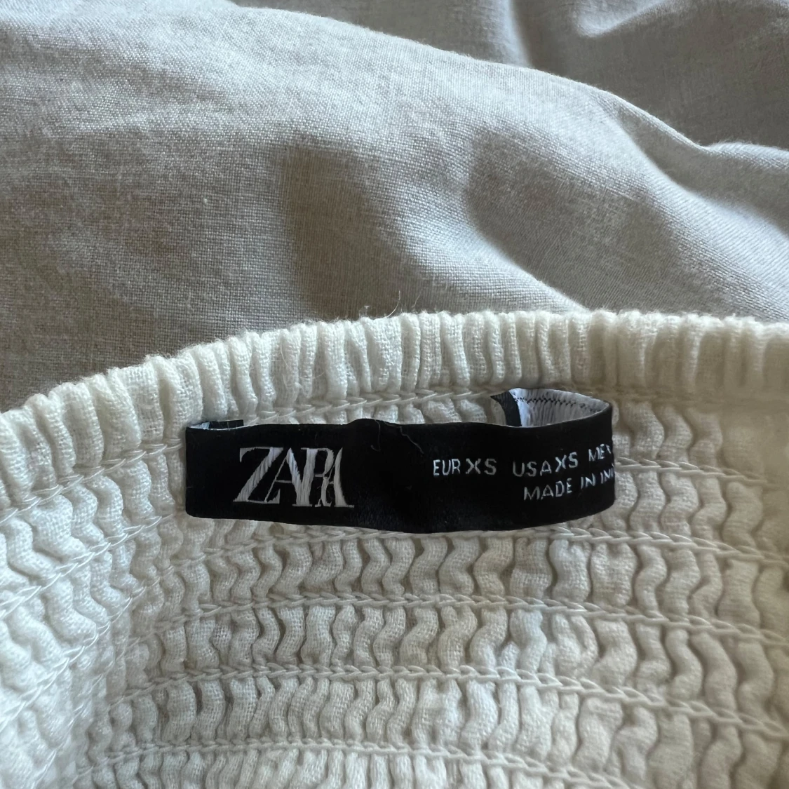 Supersöt vit kortklänning från Zara med smala justerbara axelband. Mycket sparsamt använd🥰