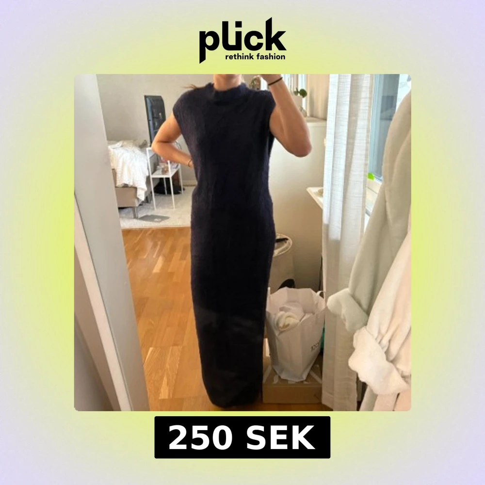 Säljer en mörkblå stickad långklänning från NA-KD. Klänningen har hög hals, ärmlös design och rak passform. Supermjuk och skön att bära. Endast använd en gång! 😍i storlek xxs/xs och köpt för originalpriset!