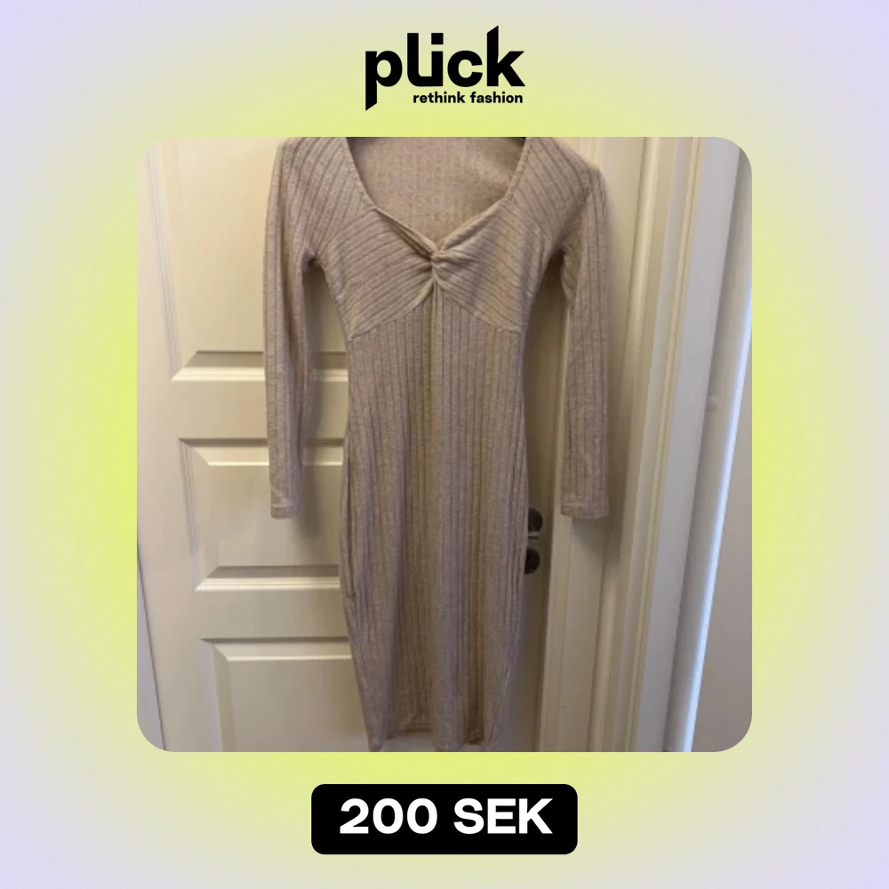 En beige medellång stickad kläning använd ett par gånger. Med en fin liten detalj där fram och ett slut på baksidan. Lite osäker på storleken men jag använder S och den passa mig bra. Pris kan diskuteras