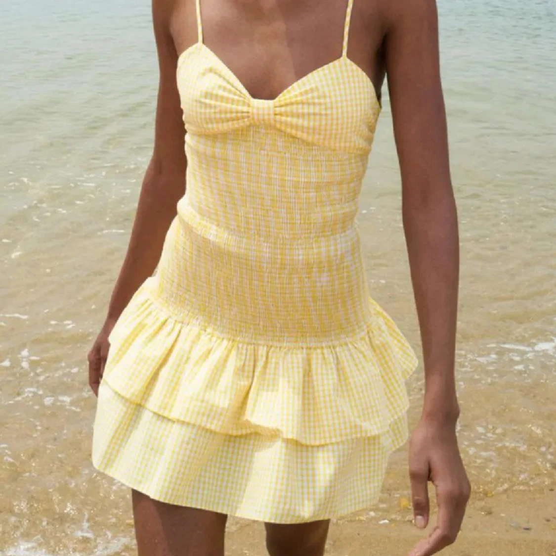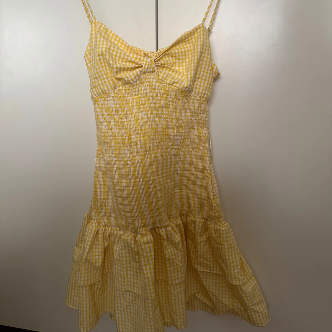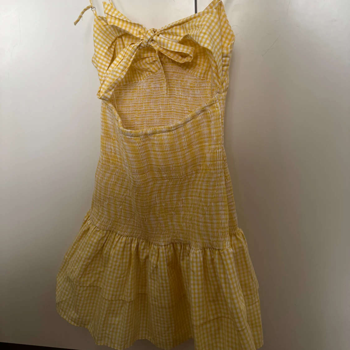 Säljer denna eftertraktade klänningen från Zara! Perfekt nu till sommaren för en unik look. Den är i storlek M men skulle säga att den passar S också, den är dessutom väldigt stretchig och går att justera i ryggen (knuten). Kom med bud och ställ eventuella frågor!