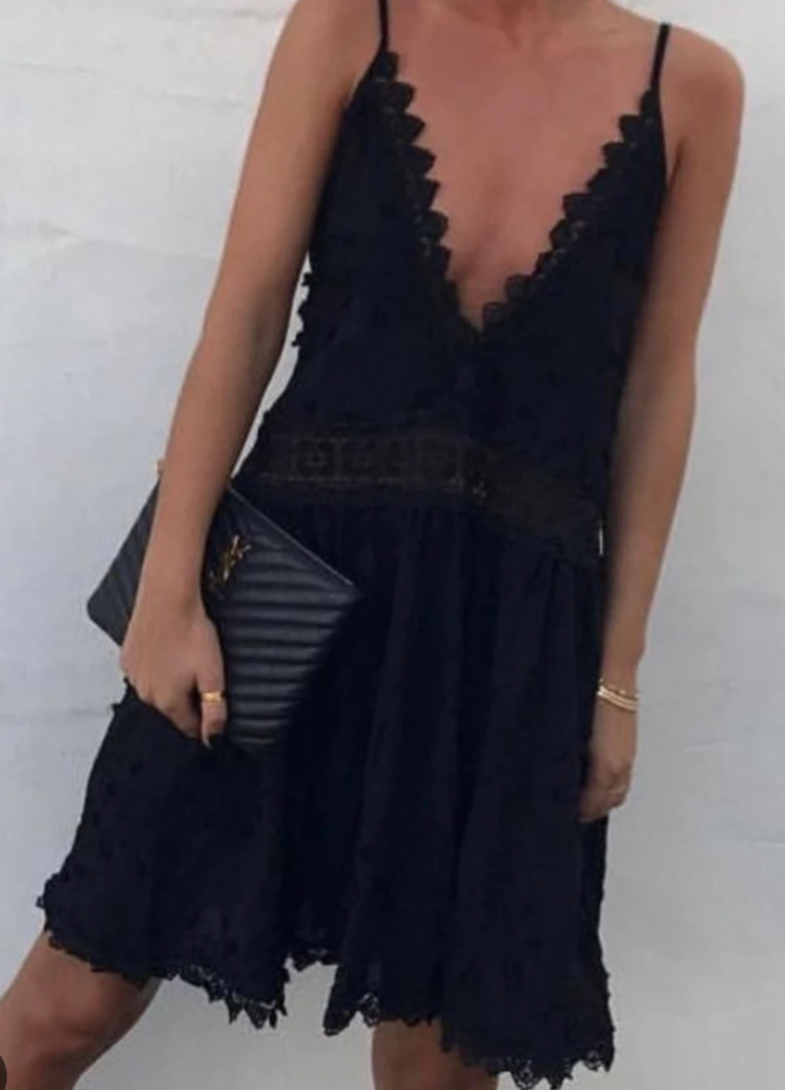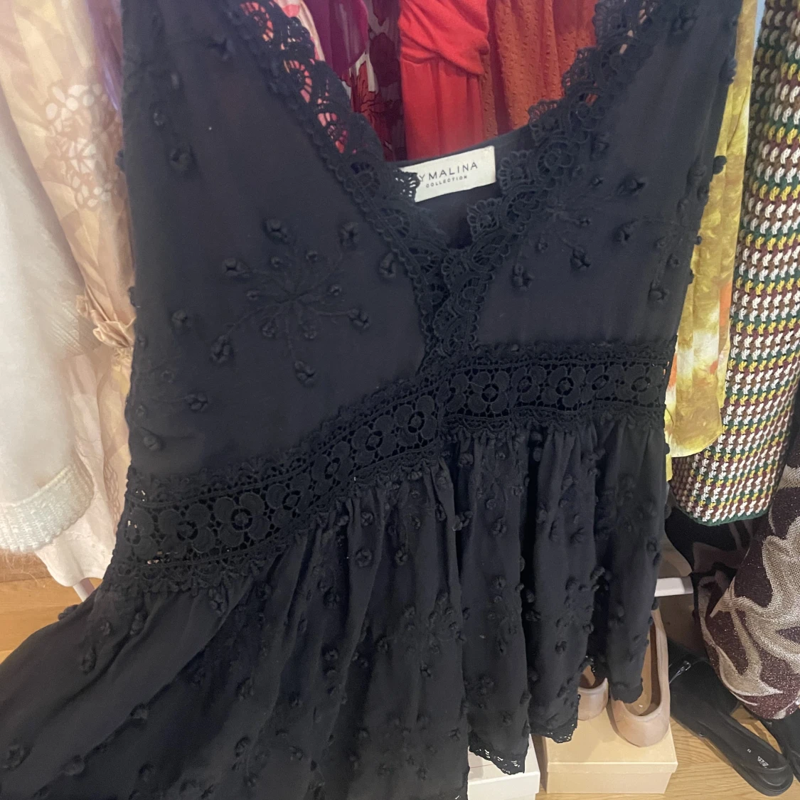 Svart by malina klänning i bra skick. Storlek small. Jätte fin med en stickad tröja över till höst eller som strandklänning. Första bild lånad