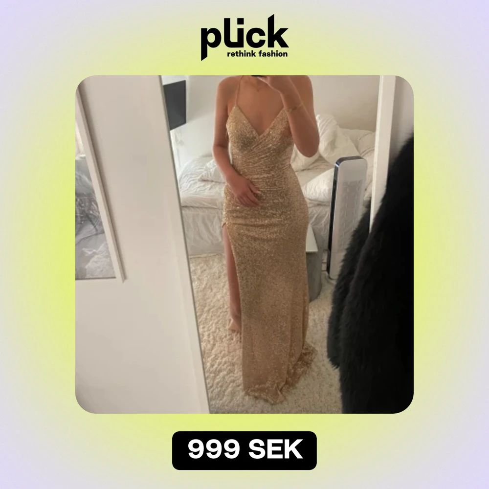 Säljer denna superglittriga balklänningen i en Champagne gullig färg. Passar perfekt nu till balen eller finare tillfällen ✨✨ Köp här på Plick säljer pg hittat en annan klänning. Köpt för 2000kr 🔥💖💖
