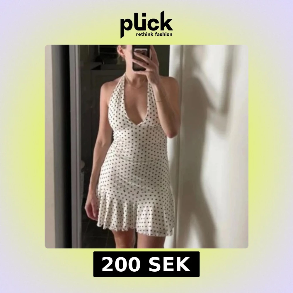 Superfin Cremevit halterneck klänning med svarta pricka, volang nertill, storlek S🤍