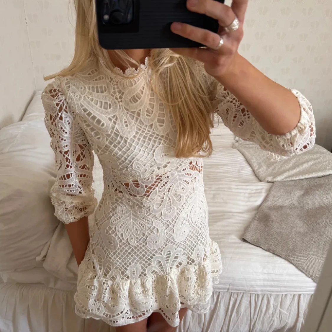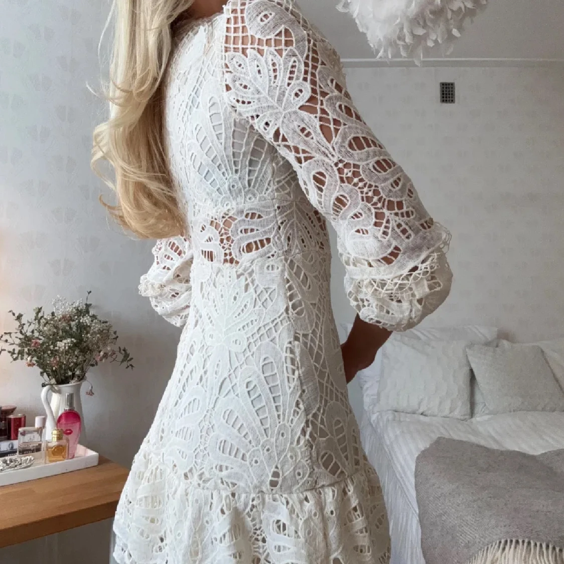 Super fin vit broderi klänning, perfekt till studenten!💓