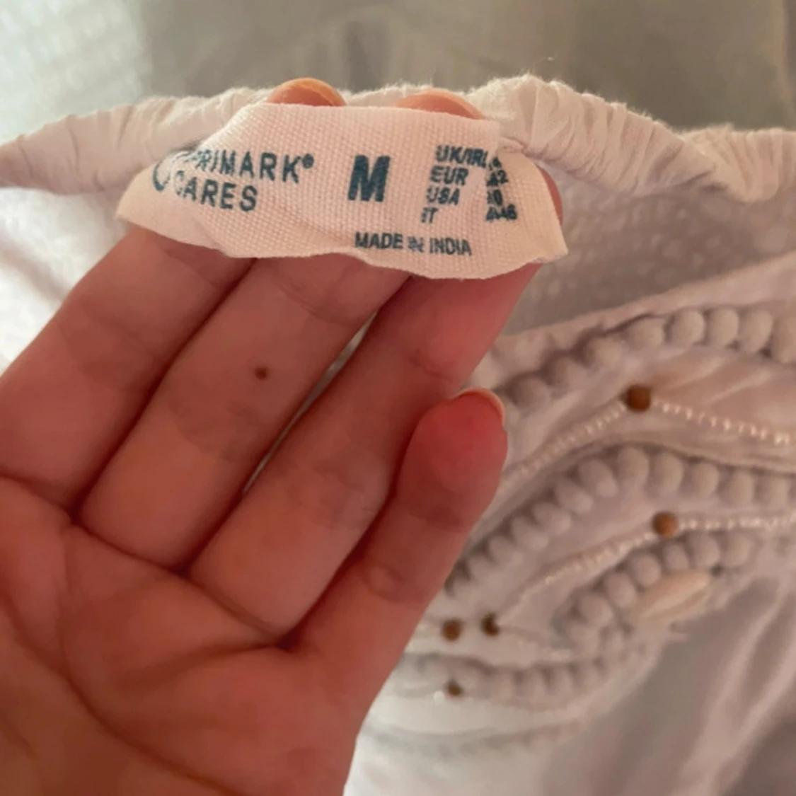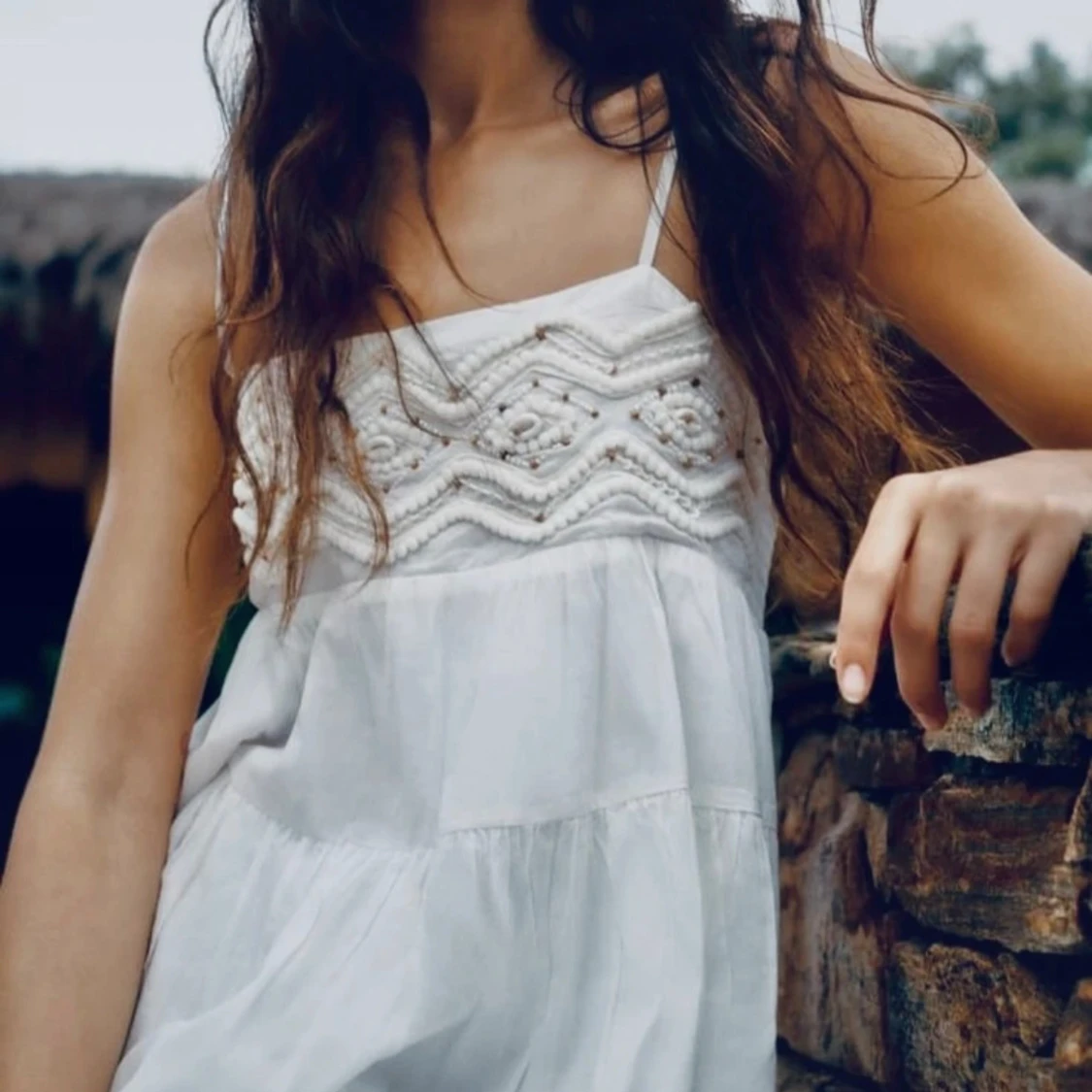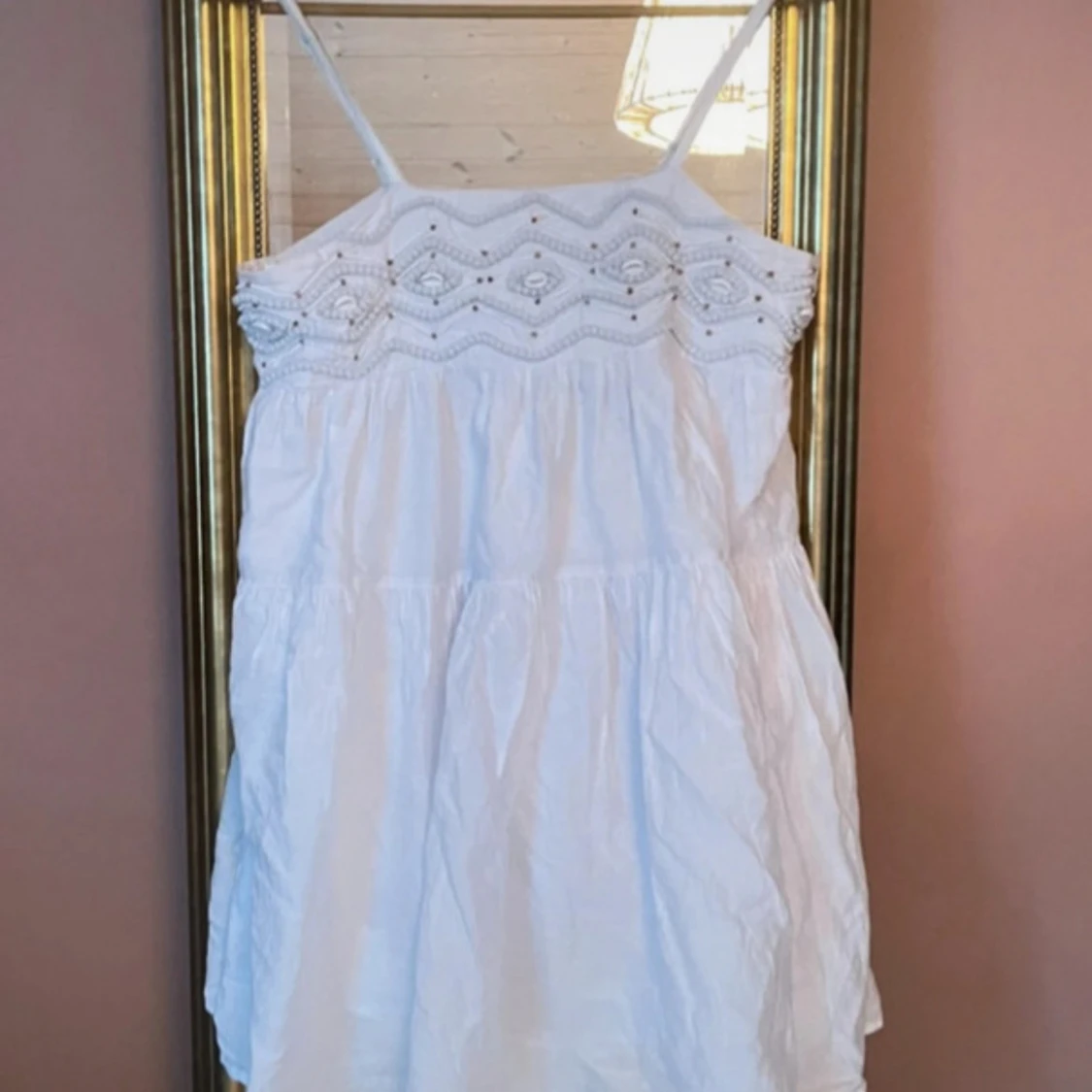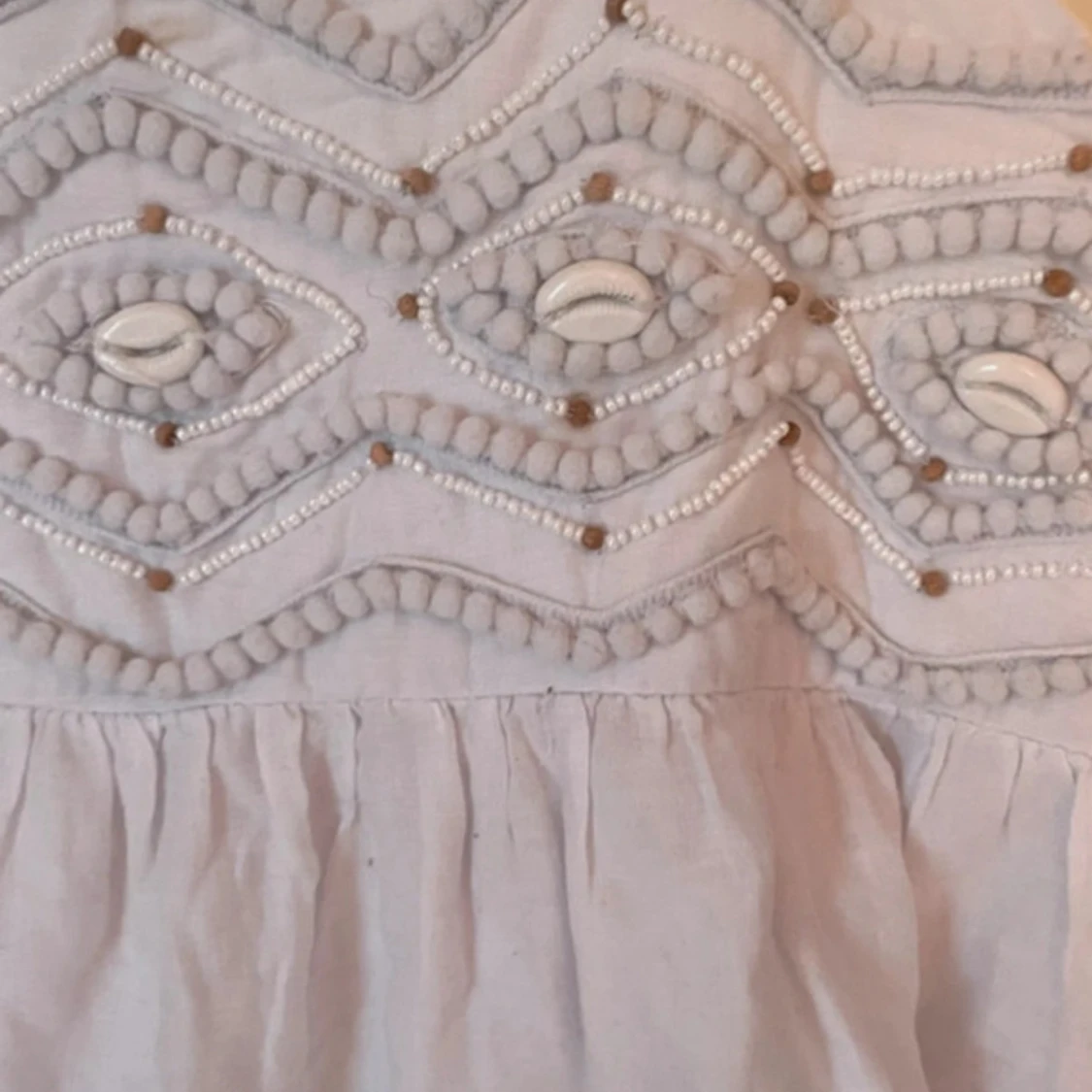 Bohemisk klänning med snäckor och pärlor. I bomull. Identisk som den från zara. Ljusblå.