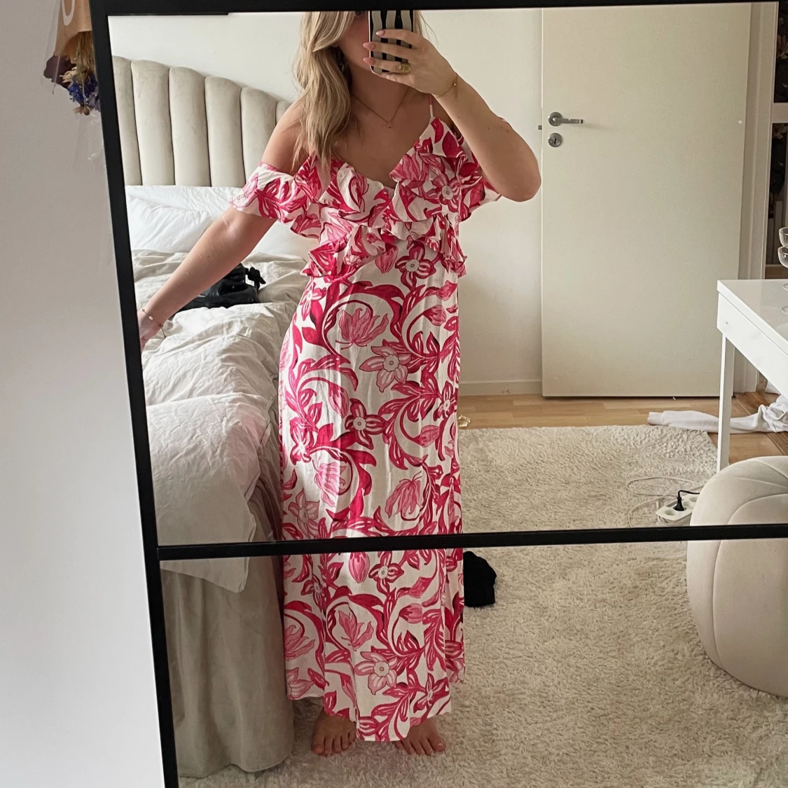 Superfin långklänning, perfekt till sommaren. Säljer då den inte kommer till användning tyvärr. Använd fåtal gånger. Pris kan diskuteras🥰