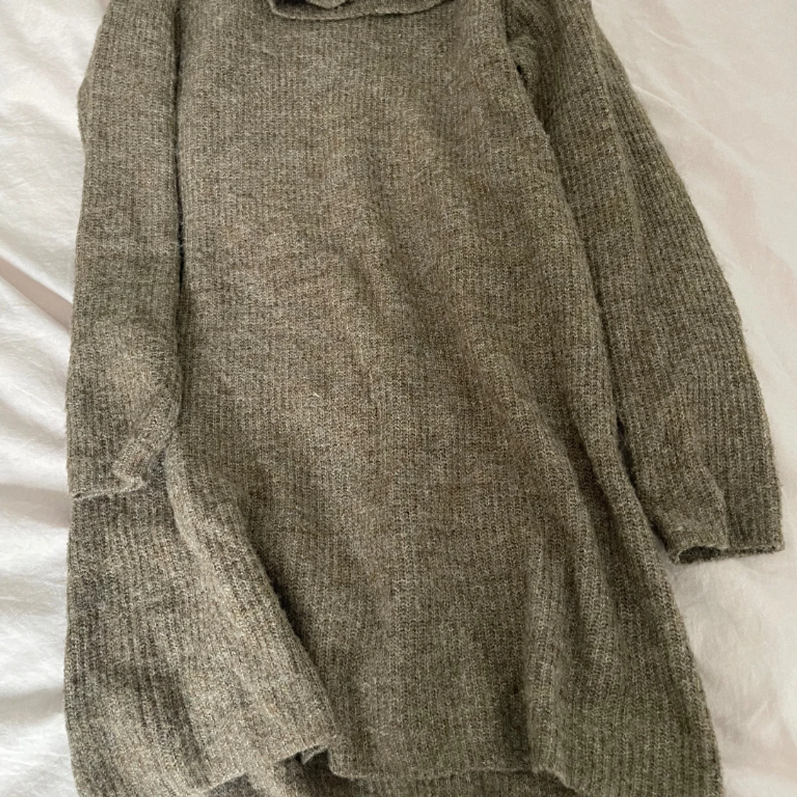 Brun stickad klänning I bra skick andvänd fåtal gånger Skulle säga att den är stor i storleken Köpt på en Vera Moda butik