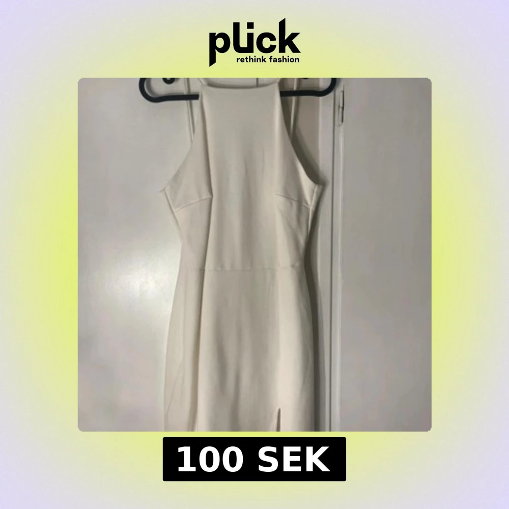 Snygg vit klänning från Stradivarius i storlek L. Modellen är ärmlös med hög hals och smal passform, samt en liten slits framtill. Materialet känns mjukt och har en lätt stretch. Perfekt för dig som gillar minimalistisk och stilren design.