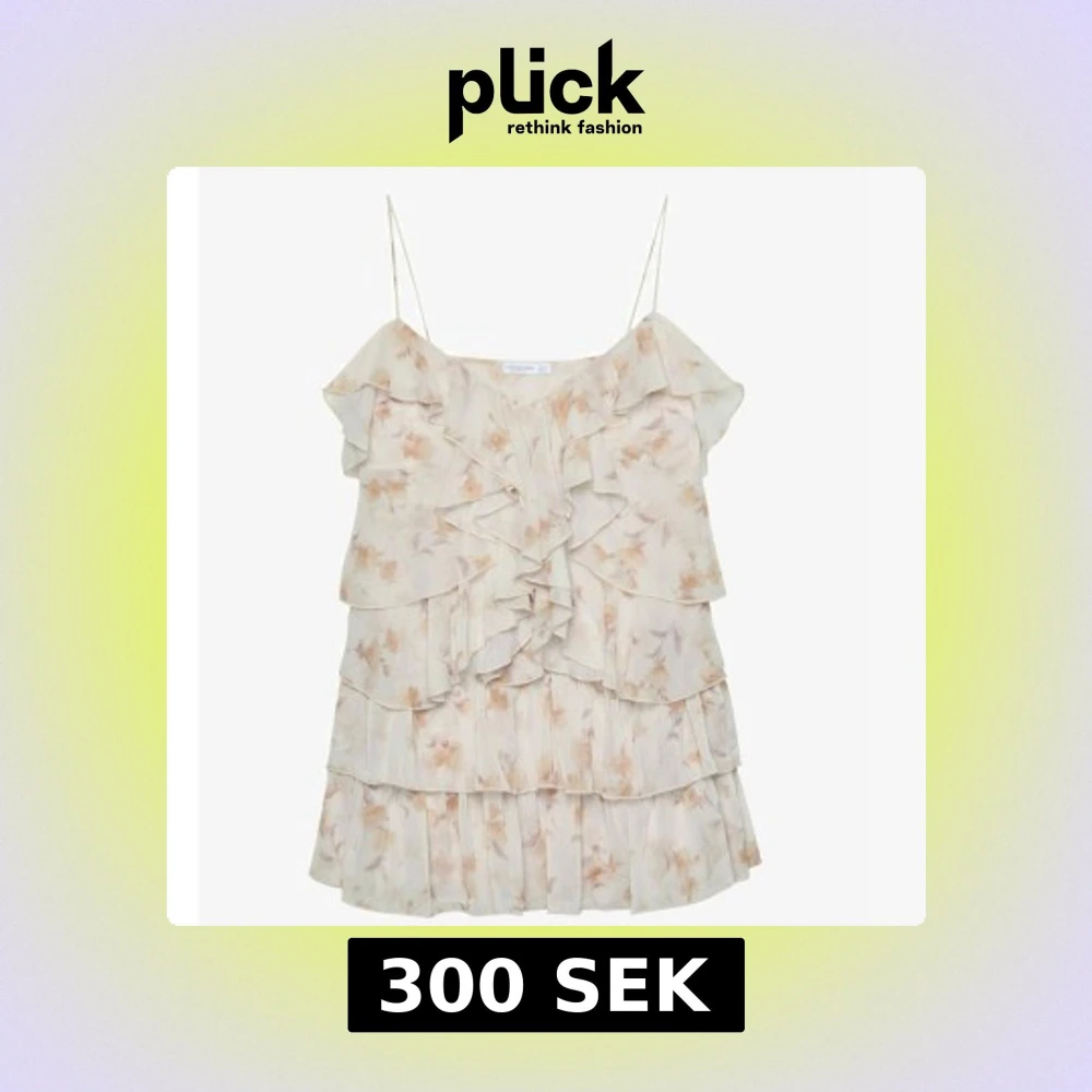 Supersöt ljus klänning med blommigt mönster och volanger! Aldrig använd! Prislapp kvar!