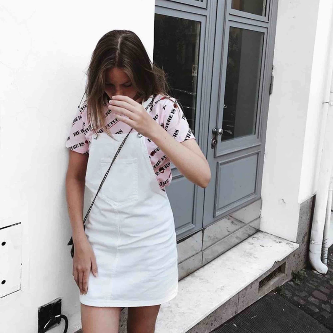 Vit hängselklänning som passar jättebra med både kort och långärmade tröjor!