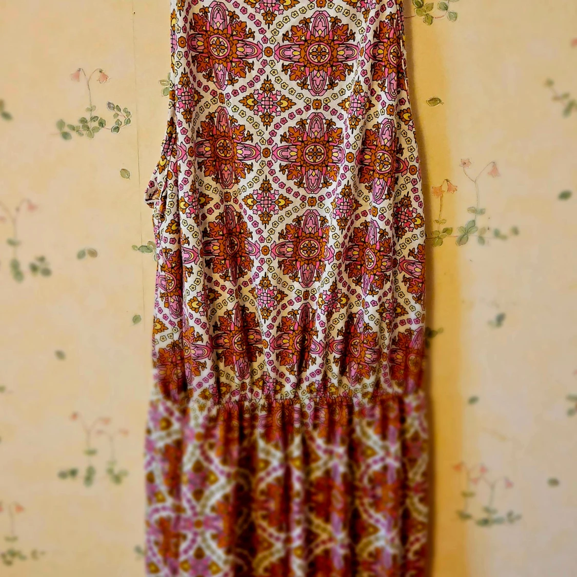 Söt sommarklänning. Minst fem år gammal. Rak med hål på sidan så benet syns. Mjuk. Möts i Gbg. 40kr. St 36 till 38.