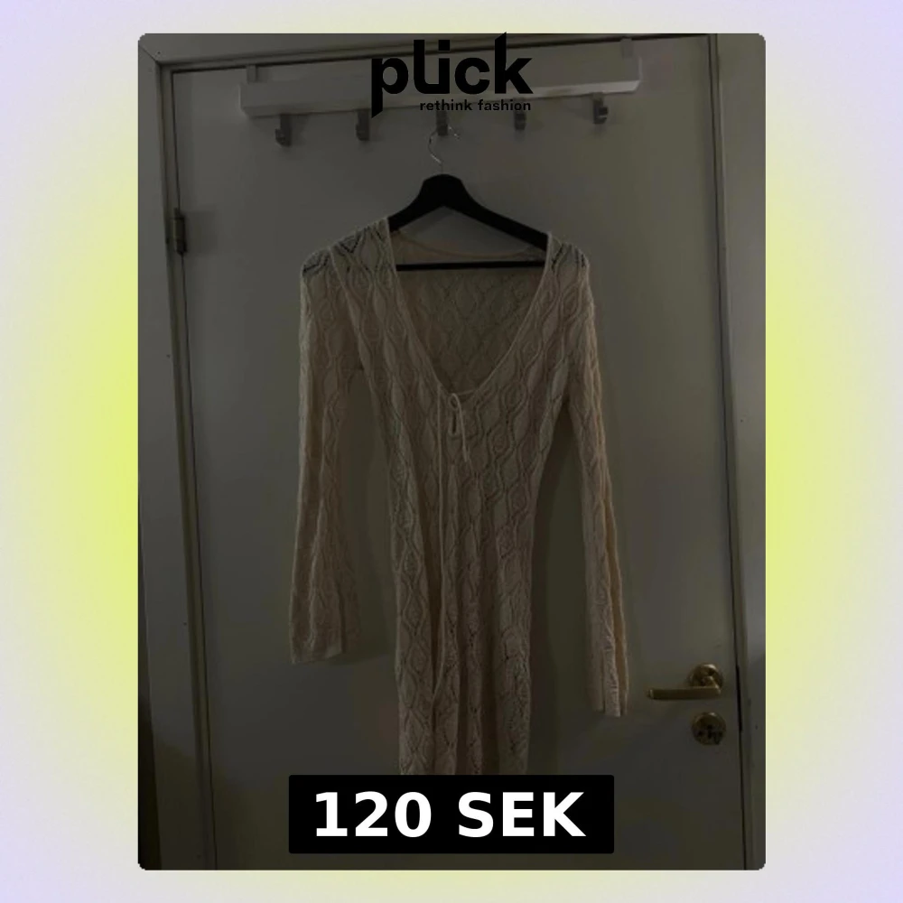 Beige strandklänning där man kan knyta framtill. Perfekt ovanpå bikini för lite täckning. Hör av dig om du har några frågor! 💗🫶🏼