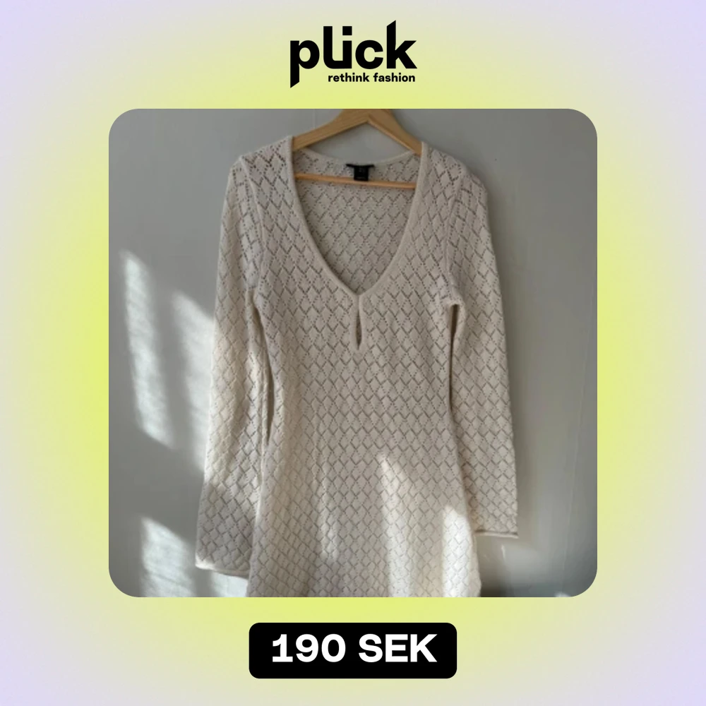 Säljer en superfin vit stickad klänning från Lindex. Den har en v-ringad hals och långa ärmar. Klänningen är i nyskick och endast använd en gång.
