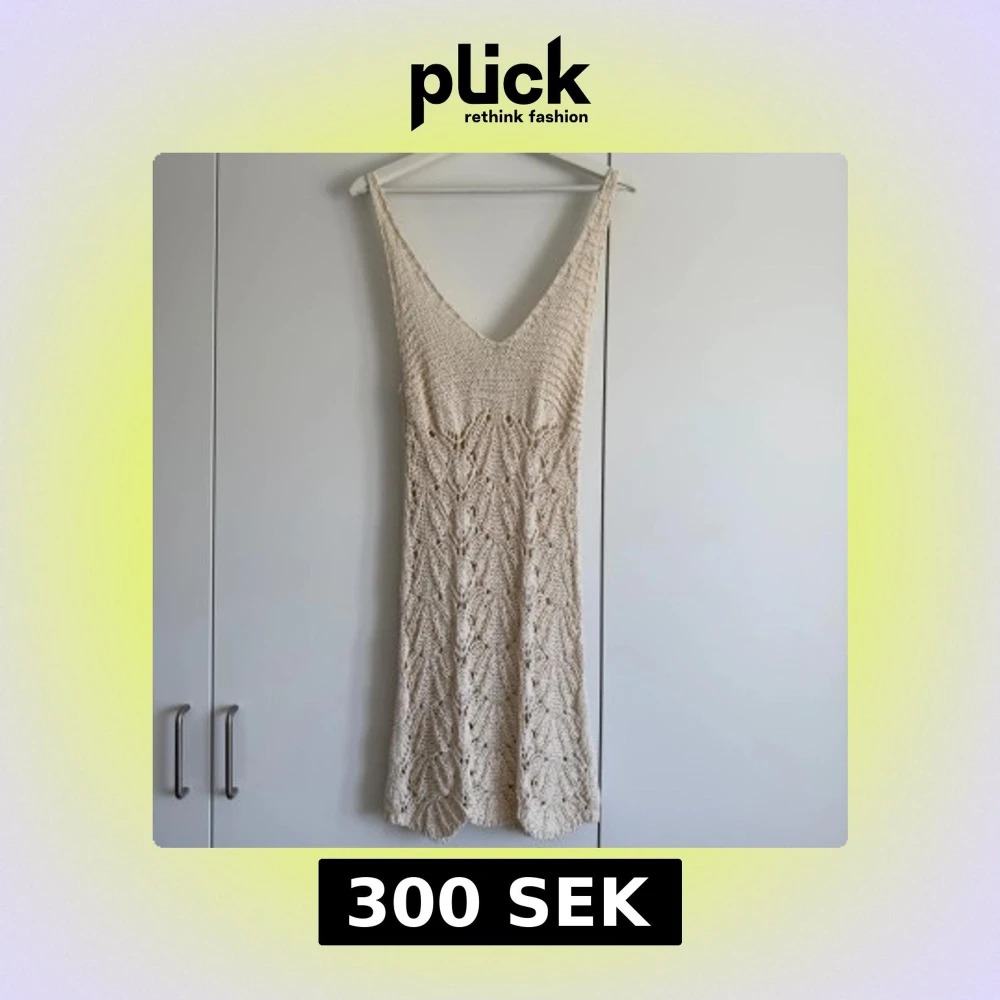 Virkad strandklänning med v-ringning och djup rygg. Perfekt för varma sommardagar. Från Zara, aldrig använd🌸💞