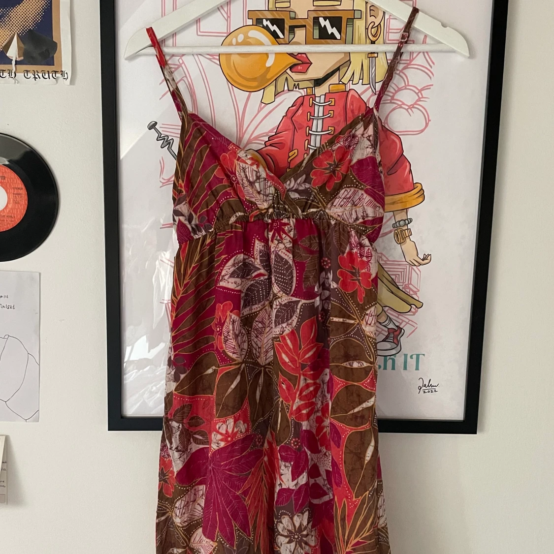 Världens sötaste sommarklänning! Passar xs-s🥰den har ett gummiband längst ner vilket gör att den går inåt där den slutar, men detta går enkelt att klippa bort ifall de önskas😍