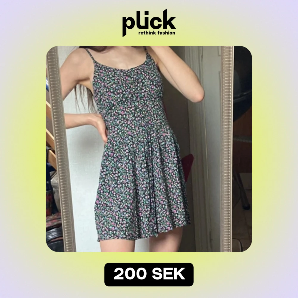 Så fin blommig klänning med justerbara straps och korsett knytning. Instoppade pads som gör att man kan ha den utan bh. Verkligen perfekt till sommaren🌸 Endast använt 1 gång!