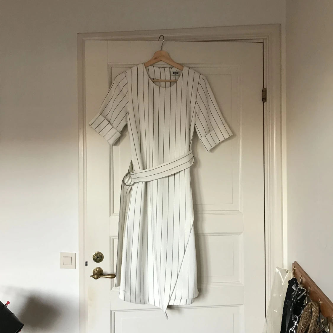 Randig klänning med omlott-kjol i tjockare tyg, sparsamt använd. Köparen står för frakten🙂