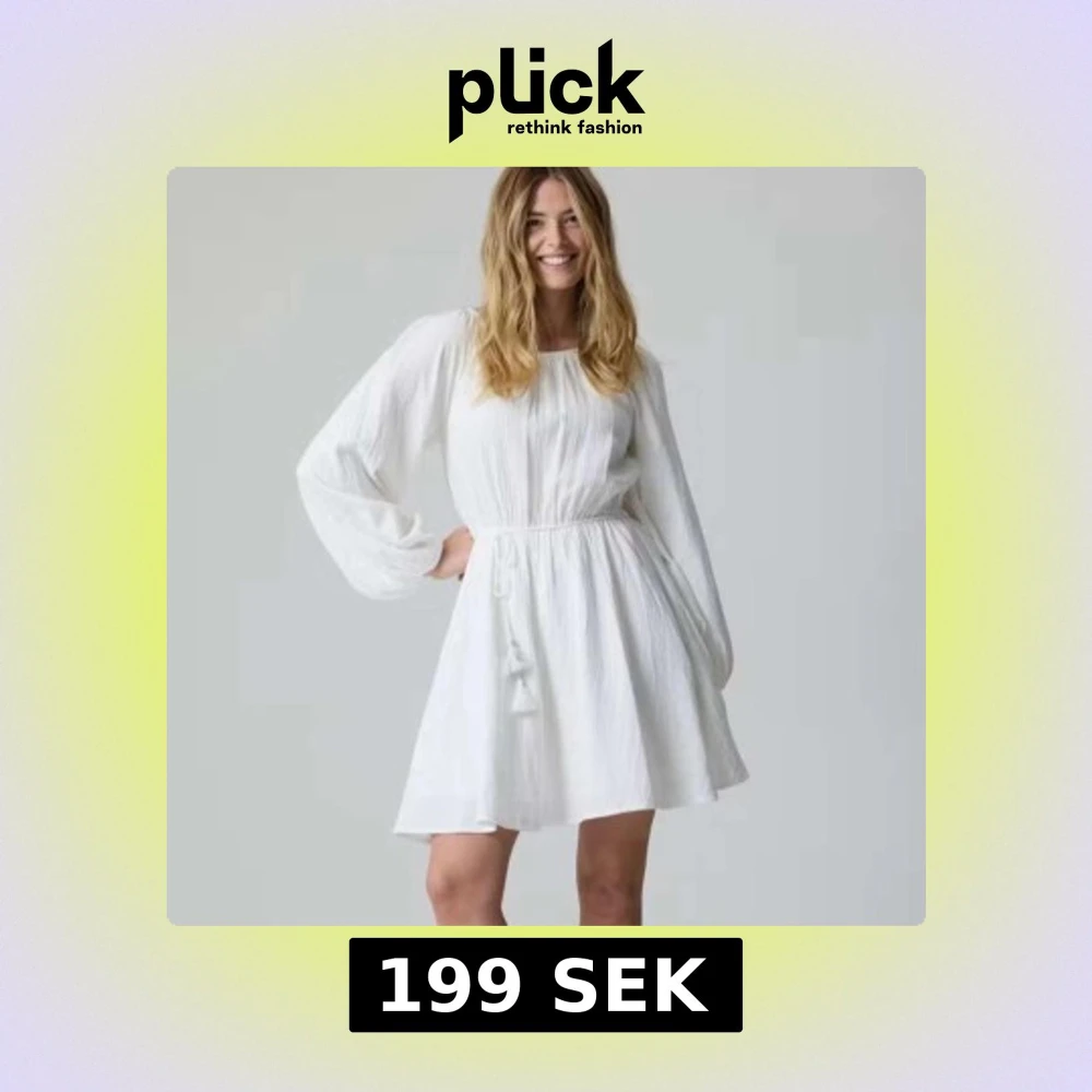 Superfin vit klänning med långa ärmar och knytband i midjan. Från Cubus. Använd en gång. Nypris 500 kr