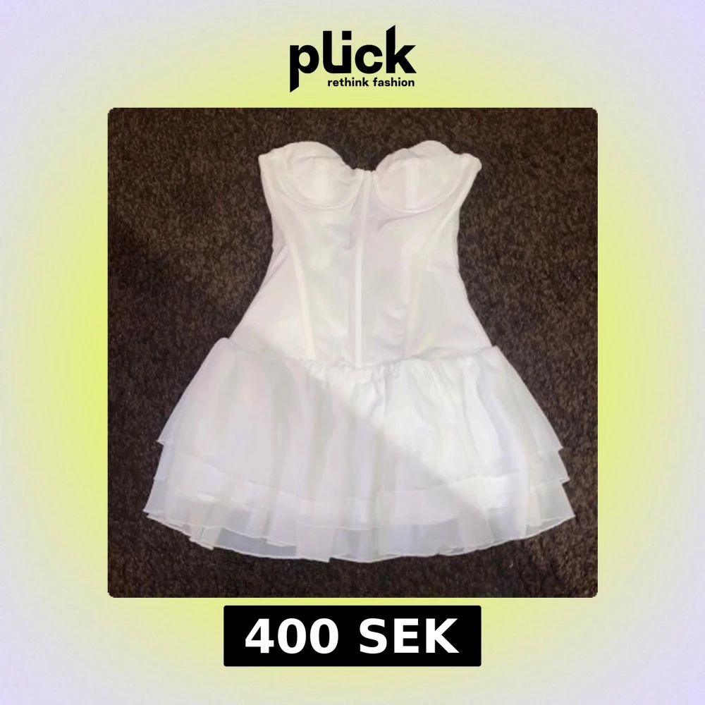 Vit axelbands klänning, passar perfekt till studenten. Säljer då min byst ej passade! Endast testad och inga defekter. Lappen är kvar! Nypris ca 700kr🩷
