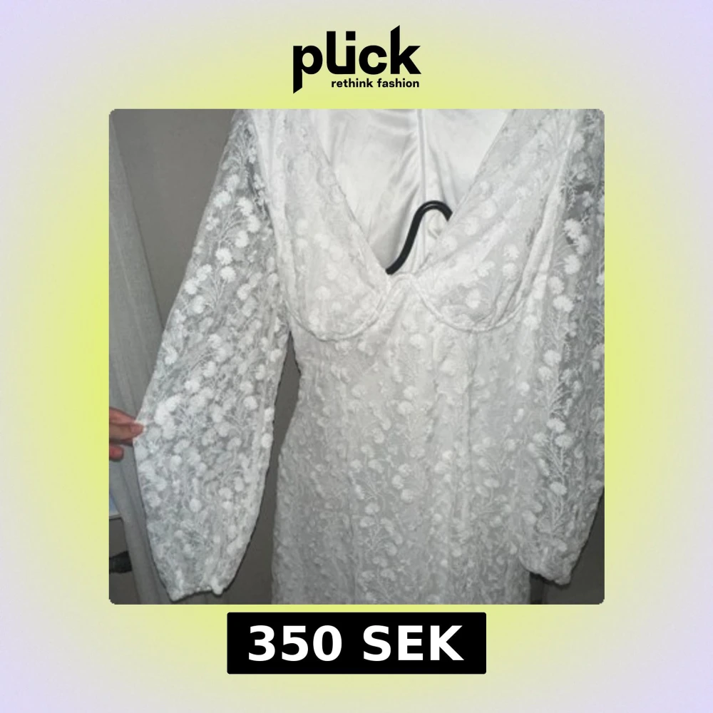 Säljer en söt vit klänning med blommigt mönster och långa ärmar. Klänningen har en v-ringad design.