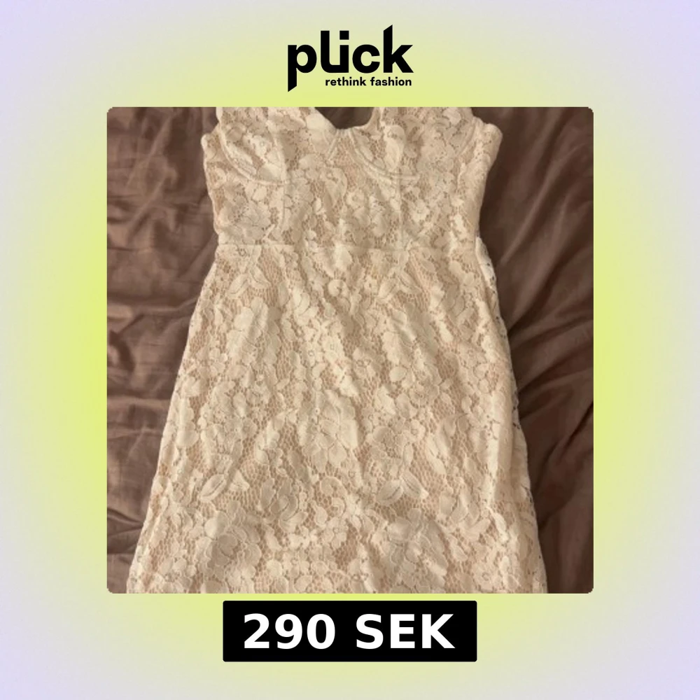 Superfin vit kort studentklänning i spets med blommigt mönster. Klänningen är ärmlös och har en feminin, figurnära passform. Den är oanvänd och är från Missguided