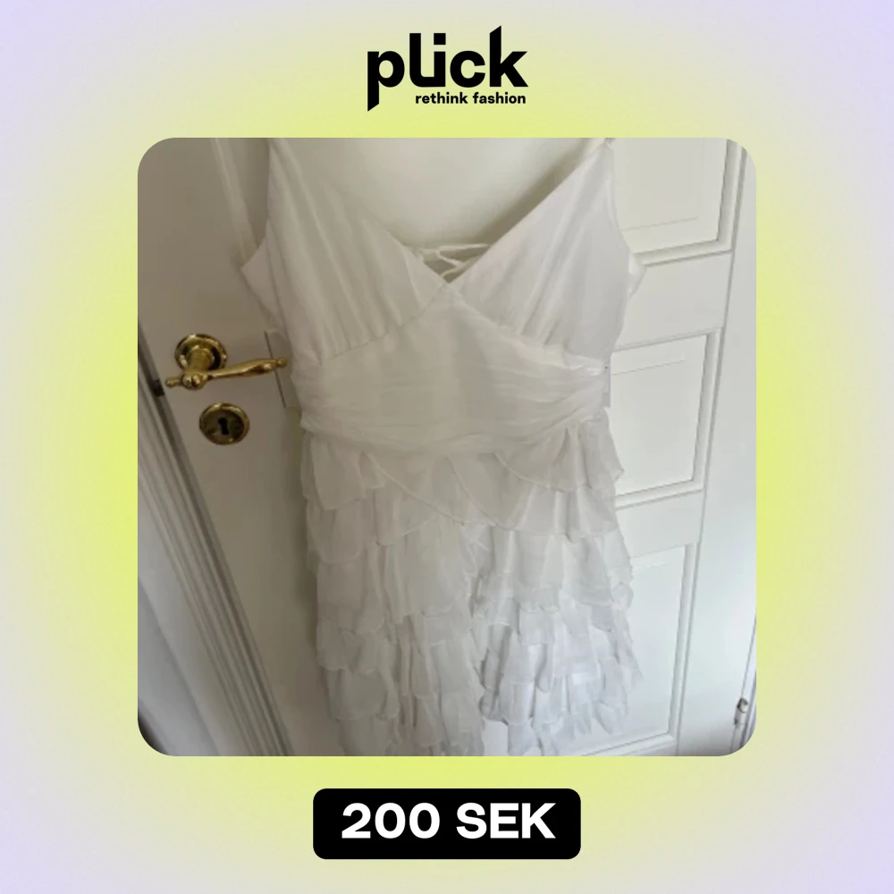 Supersöt och fin klänning som passar perfekt till studenten🫶🏼 liten skavank vid bröstet på ena snöret men går enkelt att laga med en nål och tråd🩷