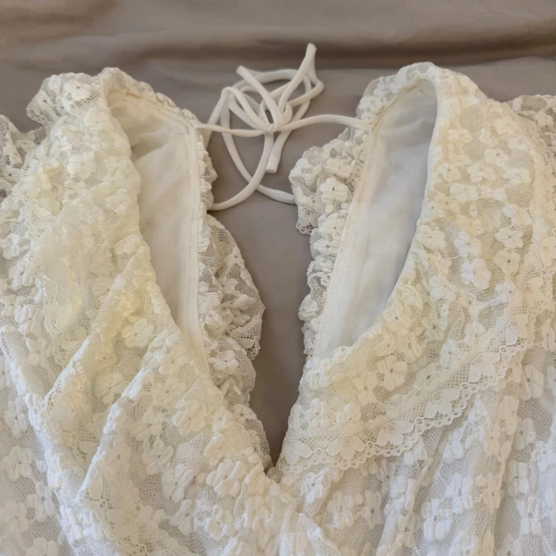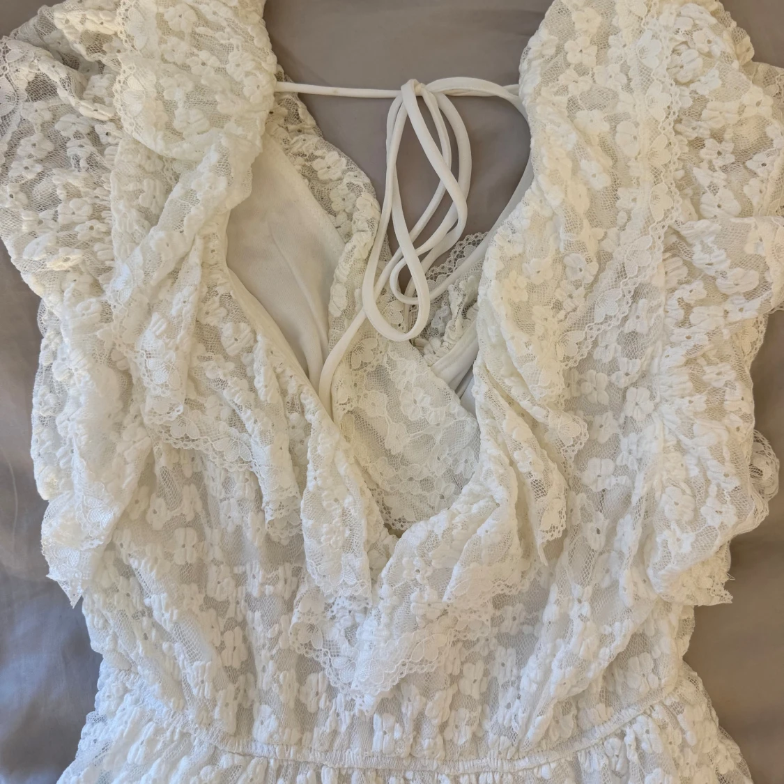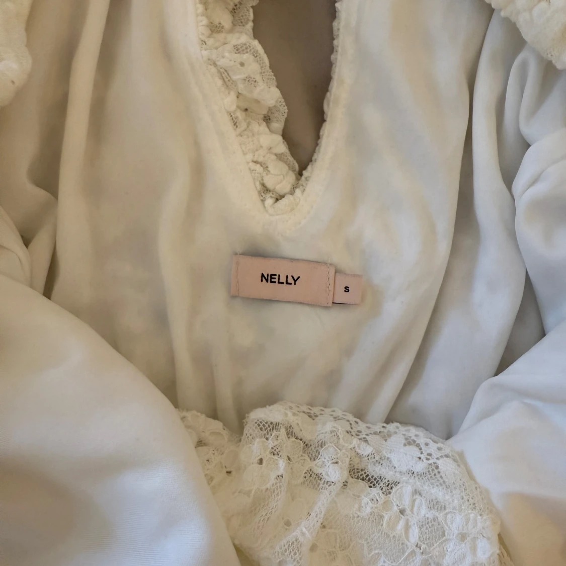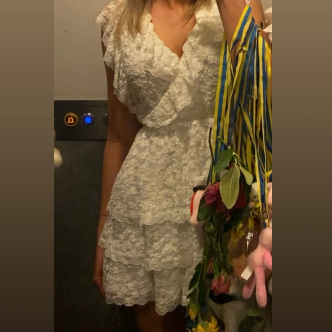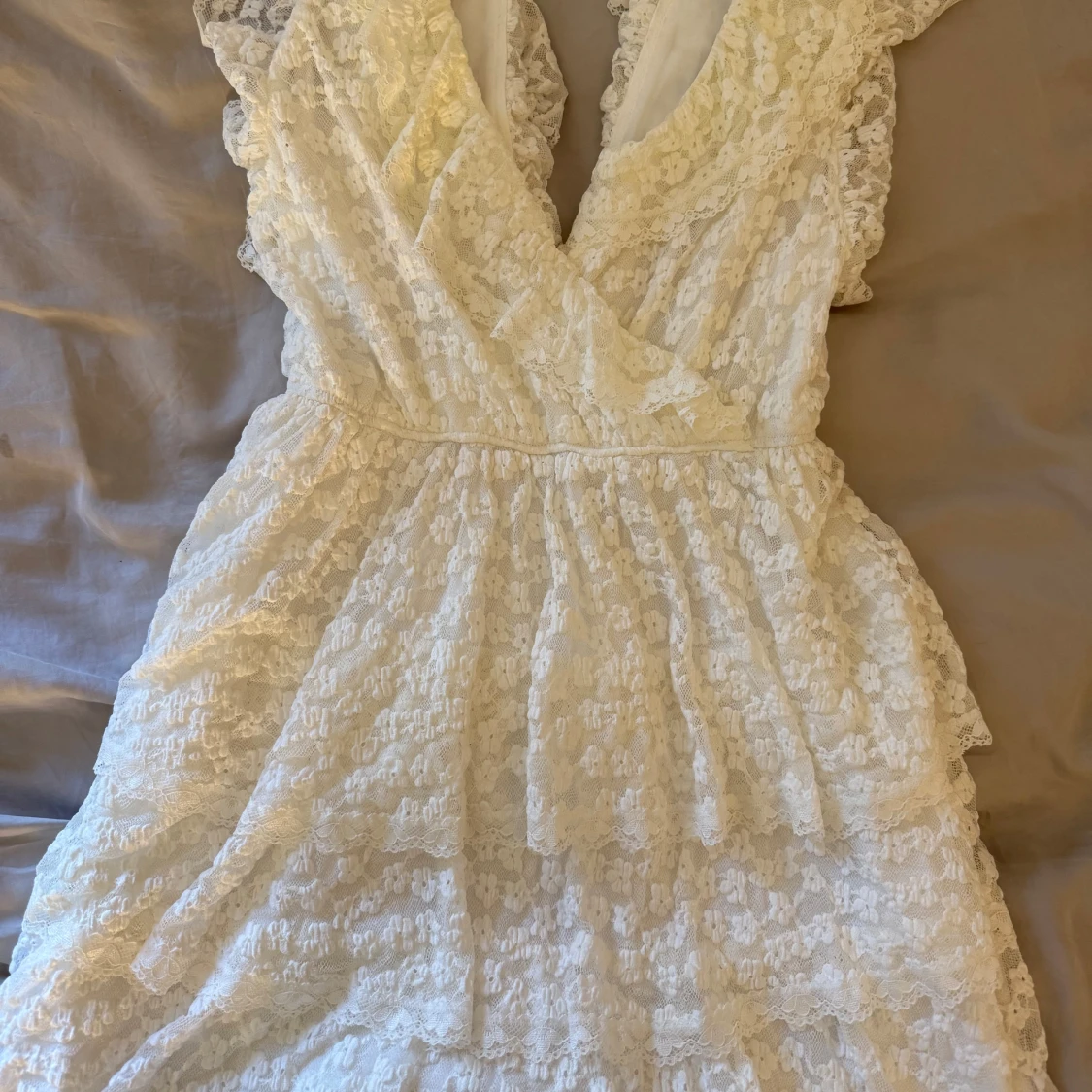 Jätte fin fest/student spets klänning st S använd en gång på min stunden, lite öppen i ryggen och går lite över knäna från Nelly