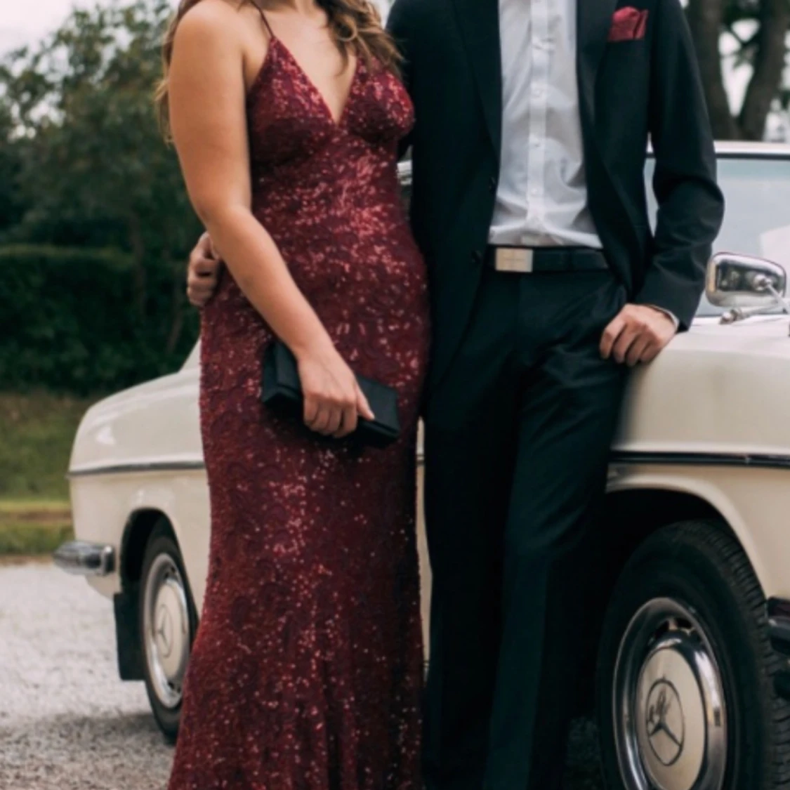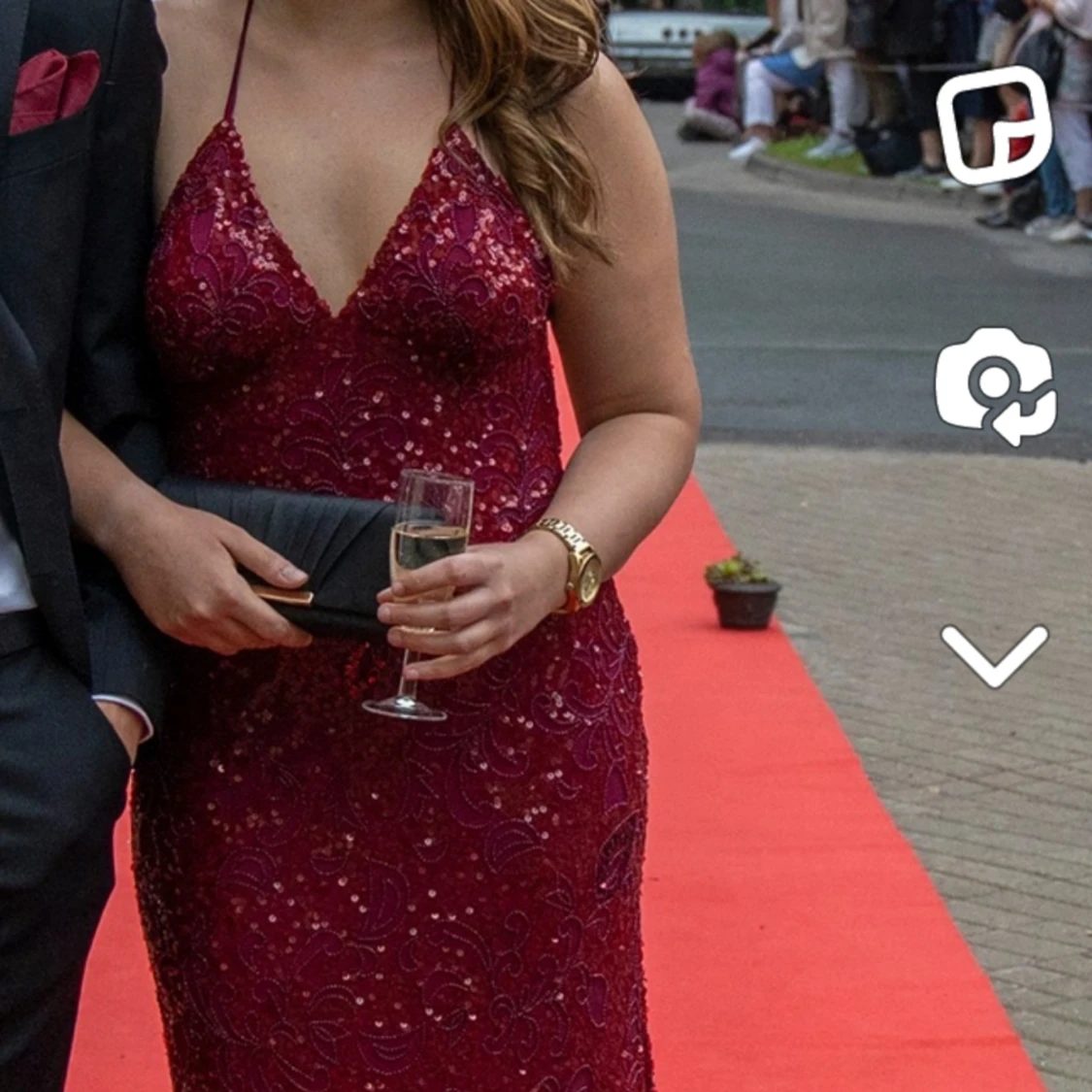 Vinröd jättefin balklänning som har ett litet släp nertill. Den är endast använd 1 gång & kommer inte längre till användning, men är i jättebra skick. Köpt för 5000kr. Pris kan diskuteras vid snabb affär. Skriv för mer info