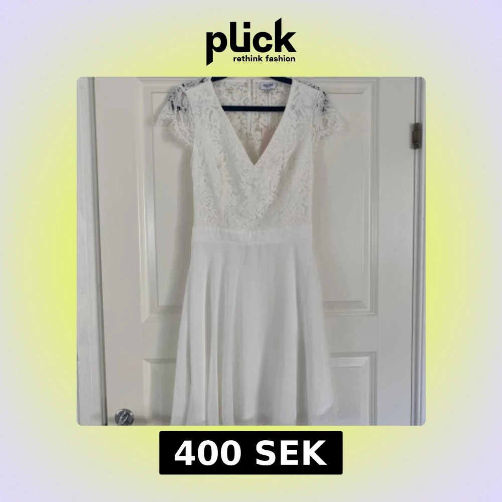 Studentklänning från Bubbleroom med v-ringning och spetsdetaljer. Klänningen har korta ärmar och en öppen rygg med knappar. Klänningen är i storlek 34 och är helt oanvänd, dragkedja finns även på sidan.🩷pris går att diskutera!