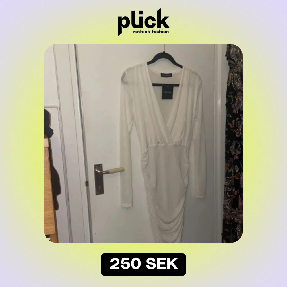 Helt oanvänd vit smått glittrig klänning. Prislappen sitter kvar. Köpt på Nelly för att ha på studenten men bestämde mig för en annan klänning i sista minuten.