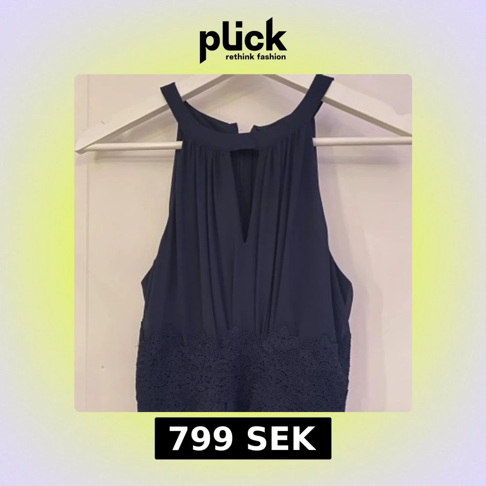 Säljer just nu denna supersnygga mörkblåa långklänningen från Vila som passar utmärkt till en studentbal eller galamiddag. Klänningen är broderad med spetsdetaljer i midjan, har en hög halsringning och en elegant v-ringning framtill samt dragkedja i ryggen. Använd en gång på ett bröllop.✨😊