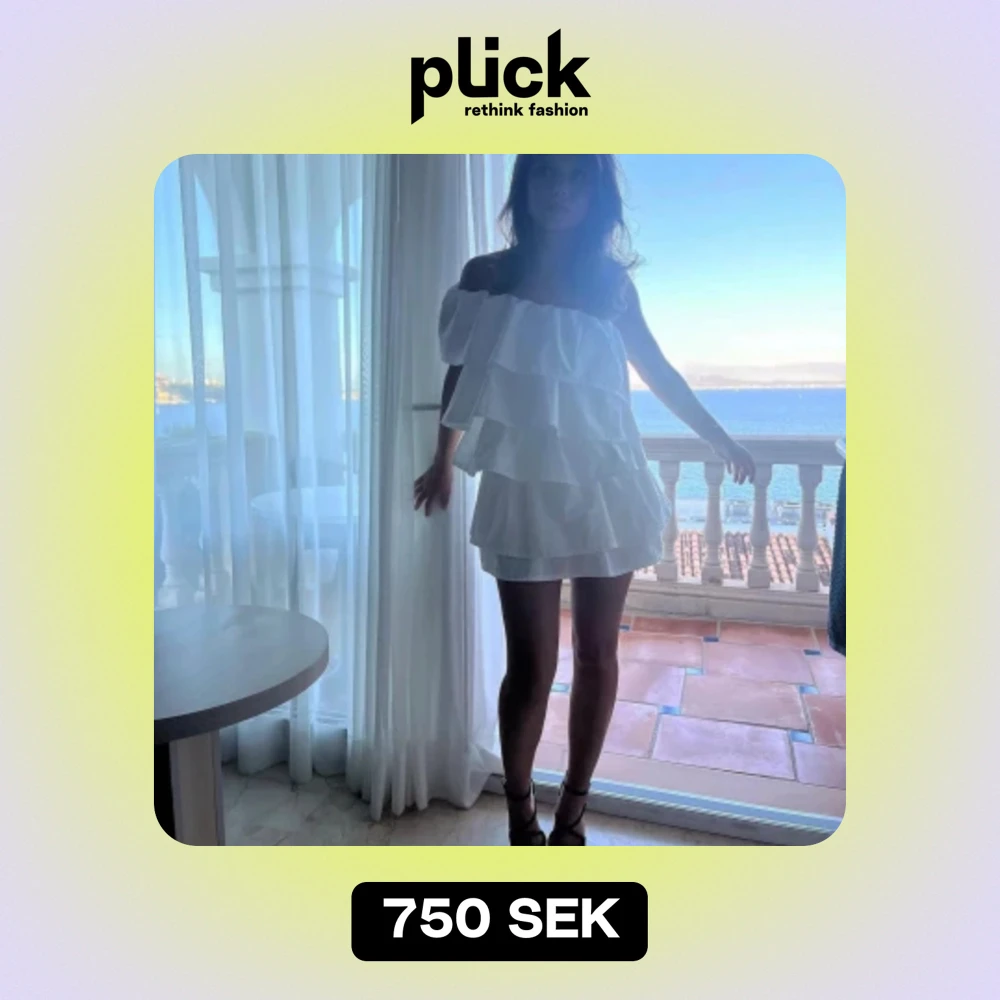Jättefin volangklänning perfekt till studenten i storlek S/M som bara är testad då jag köpte en annan💕 (lånade bilder) många intresserade så skriv bud!! Högsta bud 1000, köp direkt för 1100💕