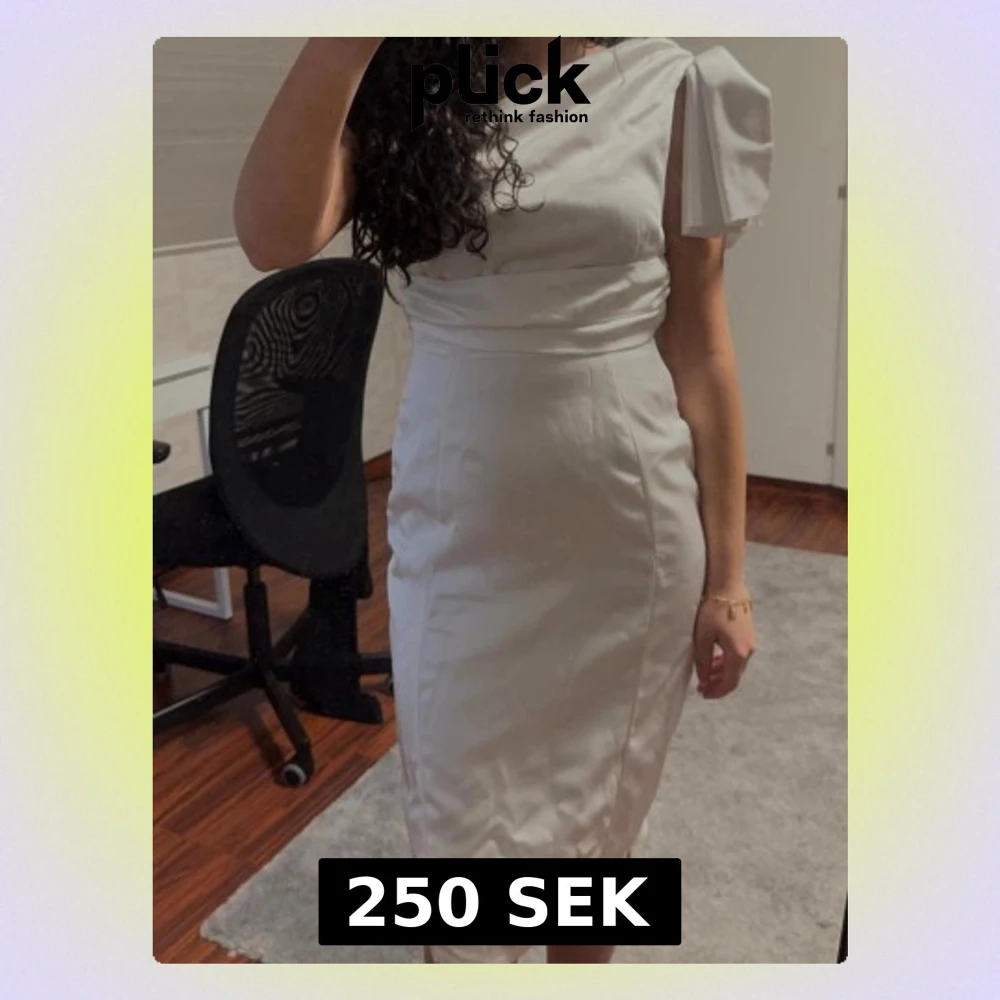 Säljer en elegant vit oneshoulder klänning med draperad midja och unik axeldetalj, med en liten slits där bak. Storlek 36. Endast använd en gång.