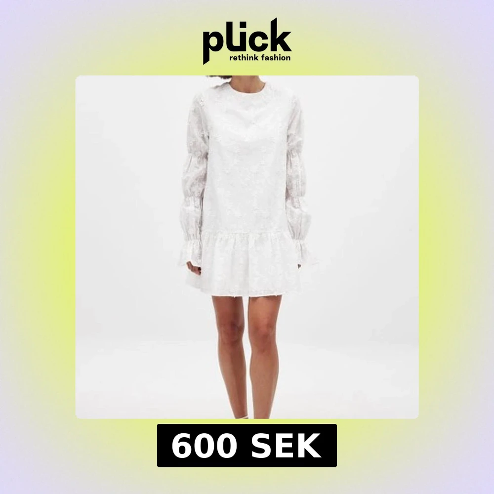 Vit klänning med blommigt mönster. Den har långa ärmar och en elegant öppen rygg med knytband. Perfekt som student- eller midsommarklänning. Den är aldrig använd med prislappen kvar💘