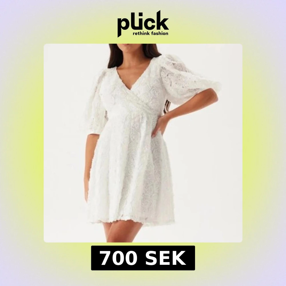 Jättefin vit klänning med blommigt mönster, aldrig använd endast testad med lappen kvar💗 Perfekt till studenten!