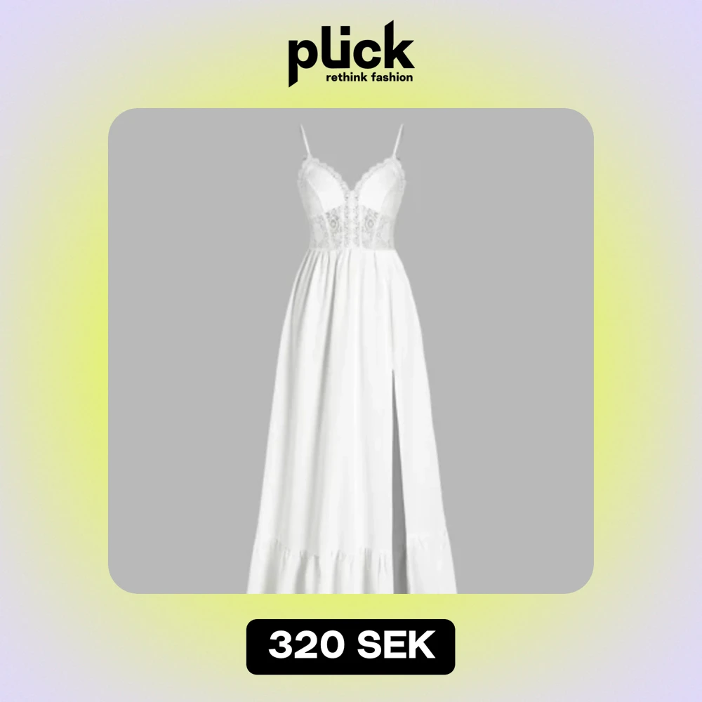 En vit klänning i stl XL/42 perfekt till studenten, aldrig använd, säljes pga hittade annan. Köparen står för frakt