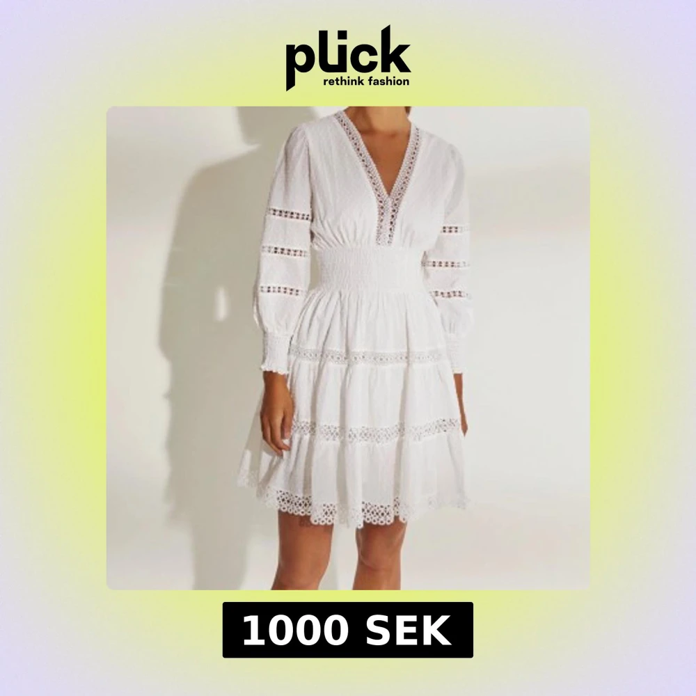 Charmig vit klänning med v-ringning och spetsdetaljer. Perfekt till studenten, skolavslutningen eller konfirmationen! Superfint skick, endast använd en gång på studentdagen🤩Enda ”felet” är att dragkedjan tyvärr inte har något stopp, så har satt dit en säkerhetsnål som stopp på insidan (bild 4). Men det är INGET som syns alls från utsidan! 🤩 Nypris: 2600 kr