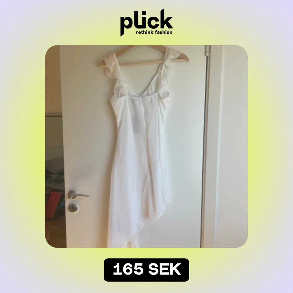 Vit klänning. Fint och bra material. Asymmetrisk. Vit klänning. Passar bra till student. Hade gärna använt men ska ha en annan. Postar direkt eftersom det snart är student.