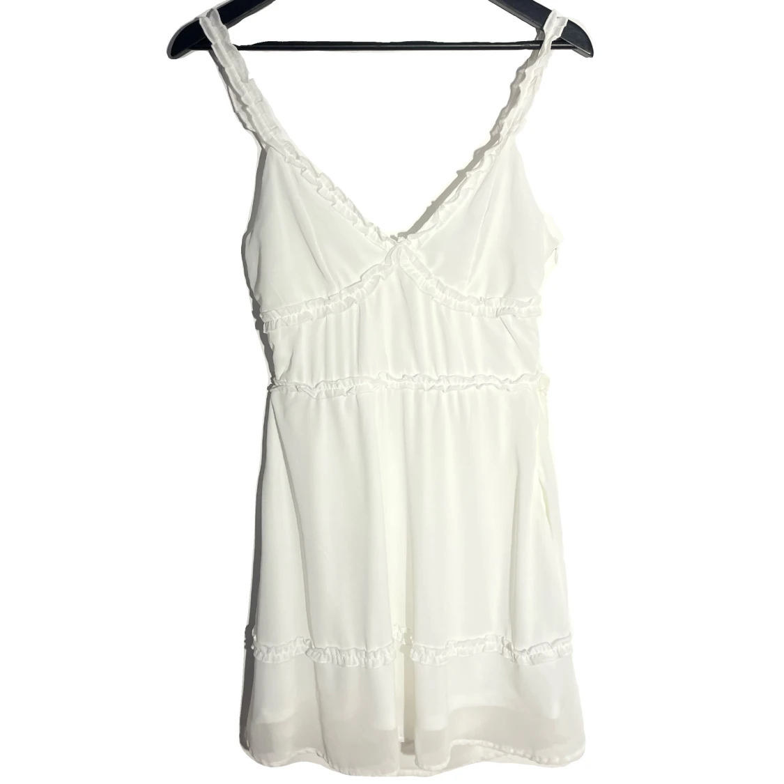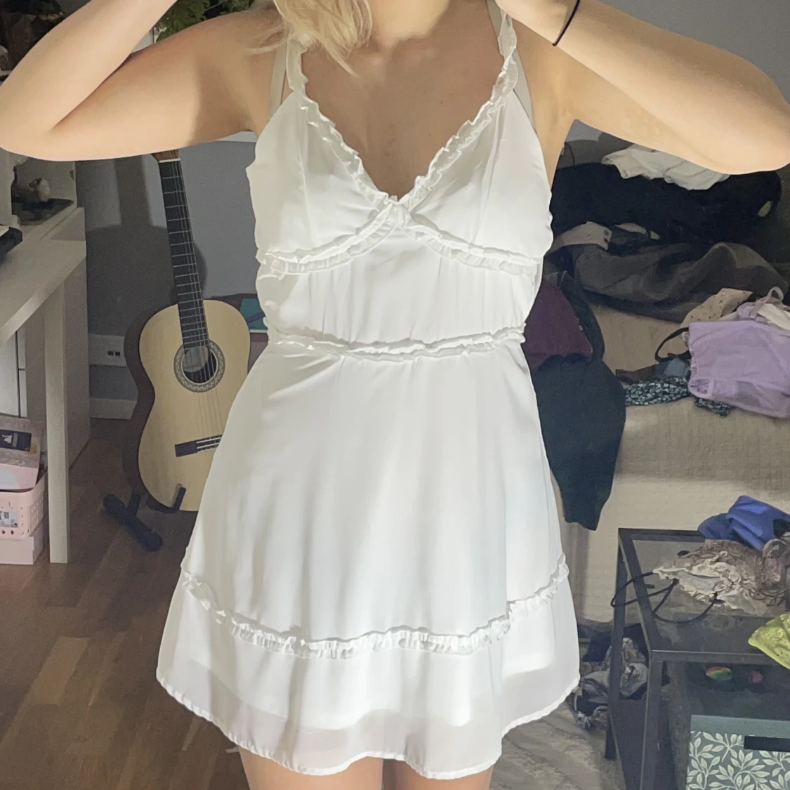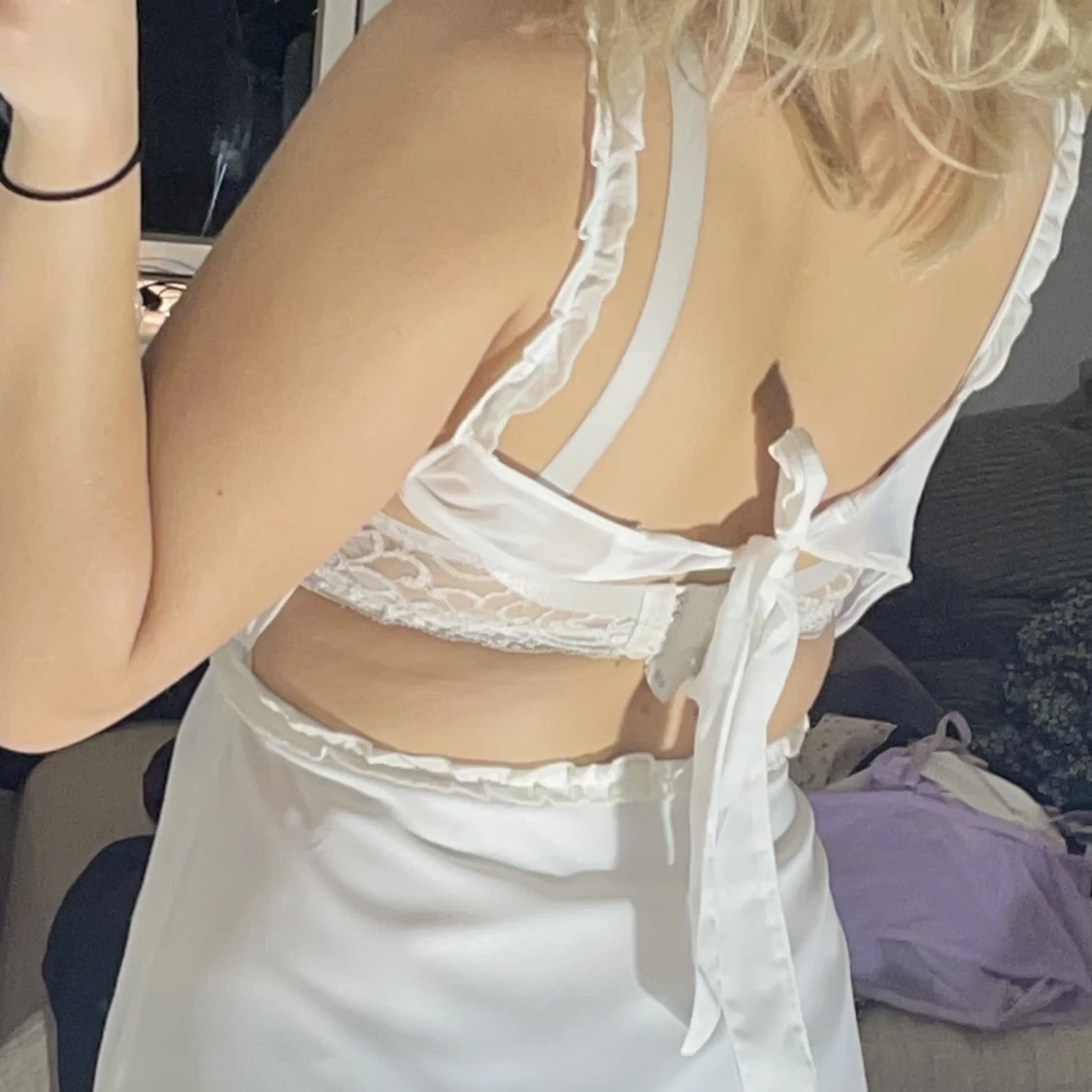 söt vit sommarklänning med volanger! öppen rygg med rosett, dragkedja på sidan❣️aldrig använd