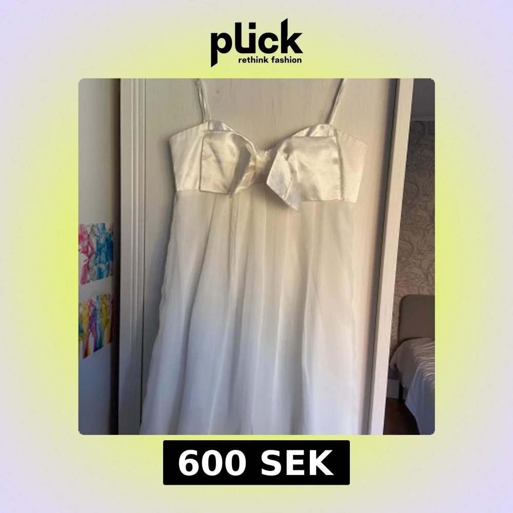 Supersöt vit kort klänning med rosett framtill. Perfekt studentklänning!