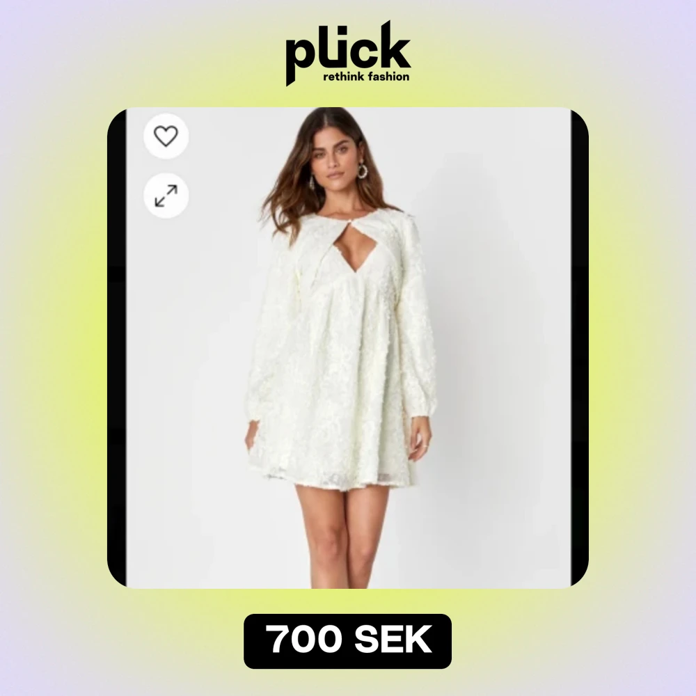 Vacker vit klänning med ”blommor”, passar perfekt som studentklänning! Helt ny, endast testad, säljer då jag hittat en annan. Nypris på hemsidan 1000. Koftan är avtagbar!
