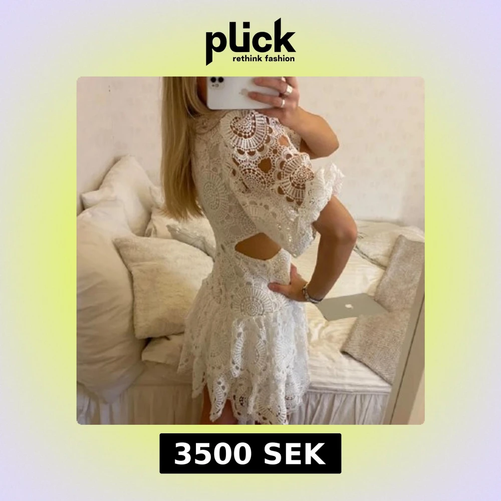 Superfin vit kortklänning i spets med v-ringning, volangkjol och snygga cut-outs i midjan. Jag använde den på studenten och vill sälja den då den var expensive men väl värd!