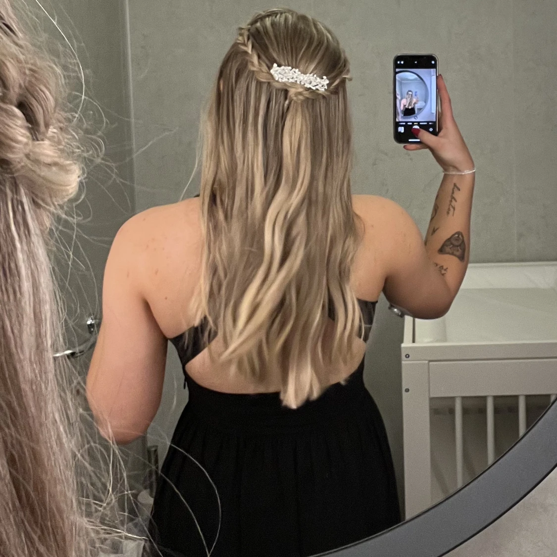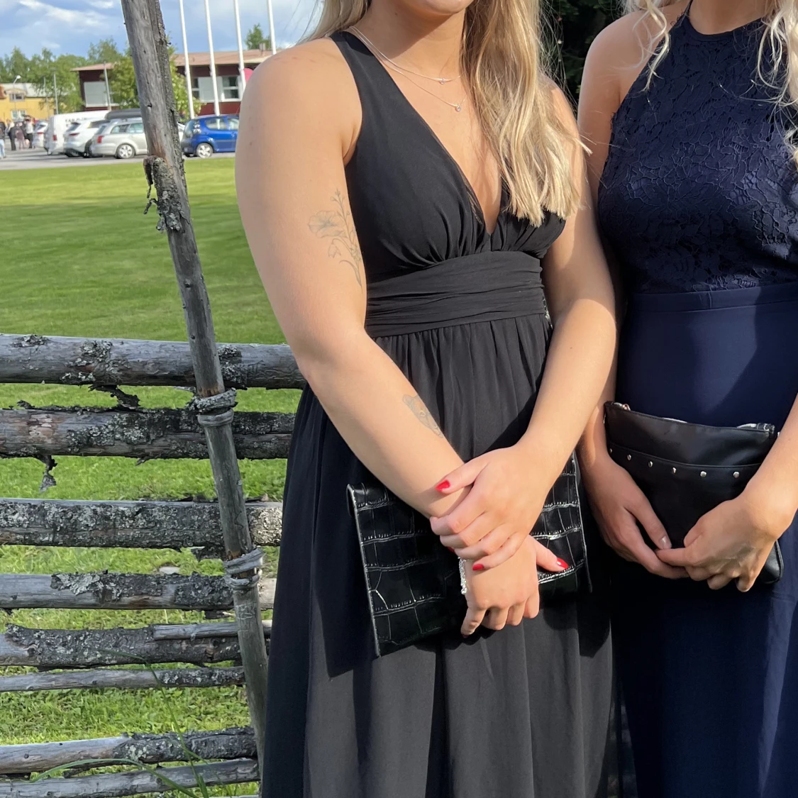 Svart balklänning från Nelly. Så fin med kors i ryggen och djup urringning. Storlek 36 och fint skick